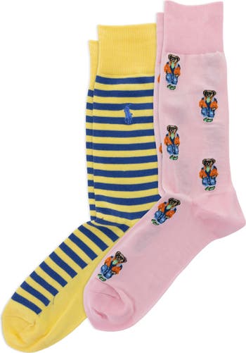 Assorted 2-Pack Stripe & Polo Bear Cotton Blend Dress Socks