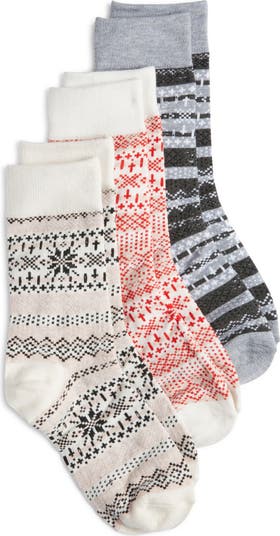 A cozy cotton blend keeps your toes warm while a Nordic-inspired pattern adds a little bit of charm to your look.