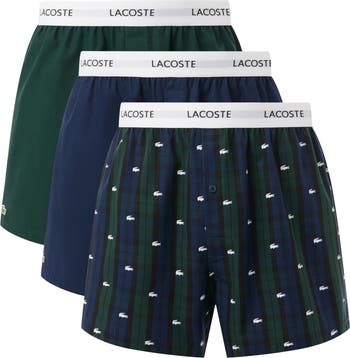 A mix of patterns and colors brings bold options to a three-pack of boxers made for comfort and support from breathable cotton.