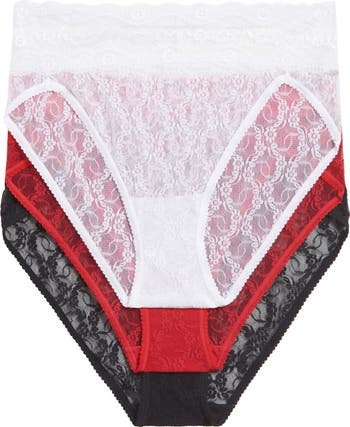 Made entirely from sheer floral lace, these high-cut briefs feature a comfy wide waistband and chic scalloped edges.