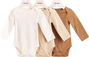 Keep baby comfy and looking cute in this set of neutral-hued cotton bodysuits detailed with pointelle stitching.