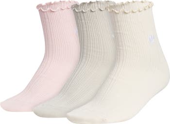 Cute ruffles and stretchy ribbing bring a peep of cuteness to these comfy ankle socks.