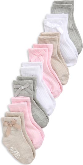 Start baby off on the right footing with this eight-pack of ribbed crew socks made with grippy soles for confident first steps.