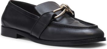 The label's signature knot hardware serves as the shining bit on an elevated loafer crafted from supple calfskin leather with a raised apron toe.