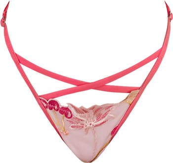 Aster features intricate cherry lace paired with vibrant hot pink straps for a striking contrast.