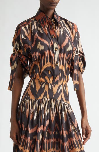 Aster Ikat Print Relaxed Silk Button-Up Shirt