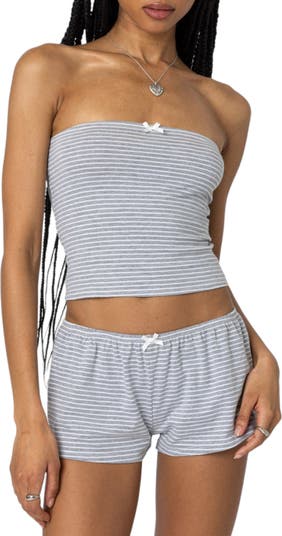 A petite bow sweetens a sassy striped tube top made from soft, stretch-kissed cotton.