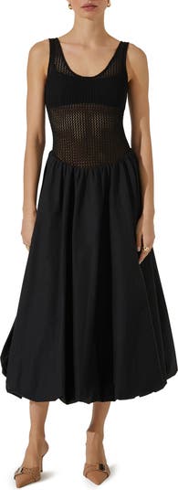 Sweet and sassy meet up in this cotton-blend sundress with a lacy knit bodice, midi-length bubble skirt and sultry low back.
