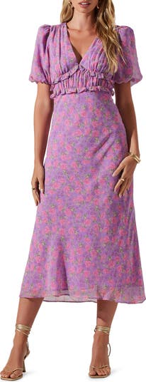 Sugar meets spice in a flower-filled dress designed with a dipped neckline and sassy open-back detail.