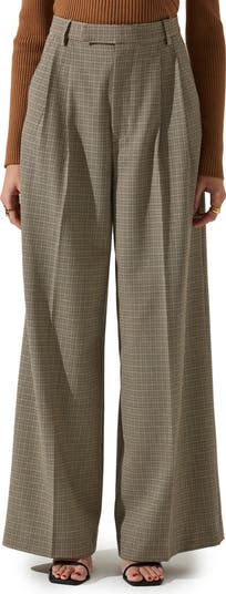Achieve desk-to-dinner perfection in these sophisticated front-pleat pants covered in a mini houndstooth pattern with a high waist and flowy wide legs.