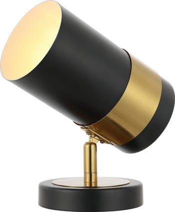 Astra 9.25" Modern Industrial Iron Adjustable Indoor LED Floor Spotlight, Black/Brass Gold