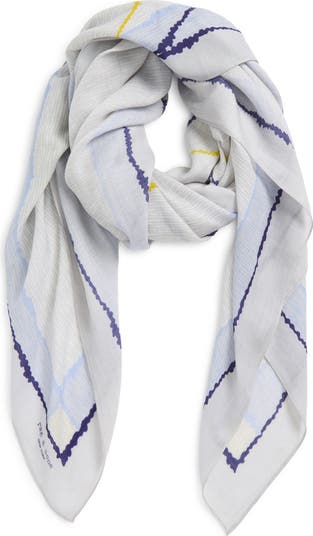 Accent your ensemble with this lengthy scarf made from lightweight, warm wool.