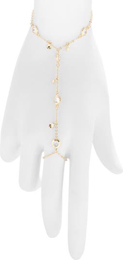 As a solo piece or the finishing touch to a curated wrist stack, this hand chain brings shimmer and shine from wrist to knuckle in gleaming 18-karat gold fill dotted with cubic zirconia.