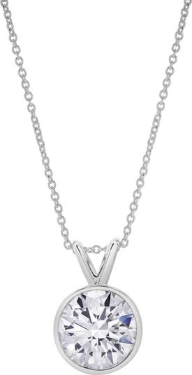 This elegant pendant showcases a 3 carat round lab grown diamond bezel set in 14K gold and paired with a matching chain. The smooth bezel setting enhances the brilliance of the diamond while giving the piece a modern minimalist edge. Perfect for those who seek refined luxury this pendant transitions seamlessly from day to night and complements everything from tailored looks to eveningwear. Whether worn as a bold everyday essential or as a meaningful gift this pendant offers timeless sophistication. Each piece comes with an IGI certificate for guaranteed authenticity. Diamond carat weight may vary up to 0.05 carats above the stated value.