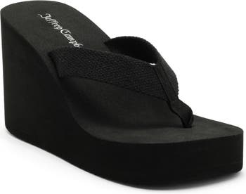 A towering wedge brings stunning height to a classic sandal perfect for your next sunny getaway.