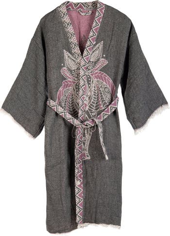 Forever & Always Shoes Astrid - Elephant Pattern Handmade Cotton Robe Cover-Up, Alternate, color, Grey