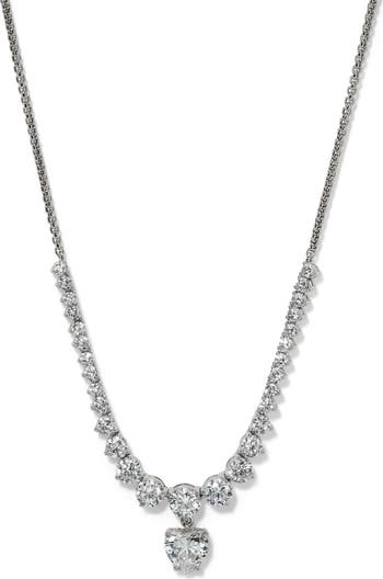 A tennis strand and pavé cubic zirconia heart give romantic shine to a box-chain necklace plated in radiant 18-karat gold or rhodium.