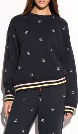 Retro stripes and contrasting blanket-stitch embroidery further the laid-back vibe of this cotton-blend sweatshirt rendered in a relaxed fit.