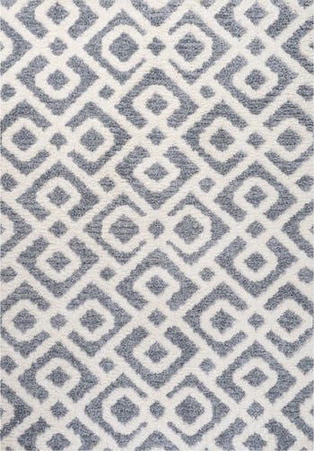 Mid-century style influences the bold pattern and texture of our modern diamond trellis rug. The timeless geometric design features flat-weave and fluffy yarns that add texture to the living room, bedroom or home office. This versatile, easy-care rug can fit in anywhere, from a modern, minimalist interior to a Boho loft or Scandinavian cottage.