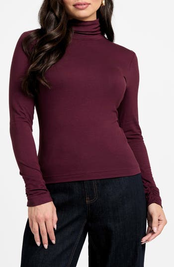 Love to layer in this close-fitting turtleneck top made from a woolly stretch-kissed blend.