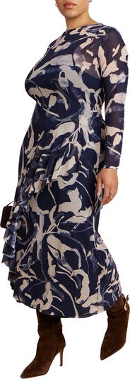 A high-stretch mesh midi with jewel neckline and long, sleek sleeves.