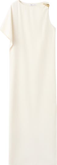 Polished hardware accentuates the refined, modern silhouette of an asymmetric column dress that's ready for your next occasion.