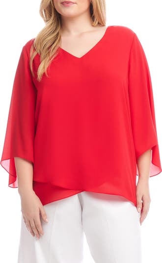 Karen Kane Asymmetric Hem Crepe Top, Main, color, Cherry