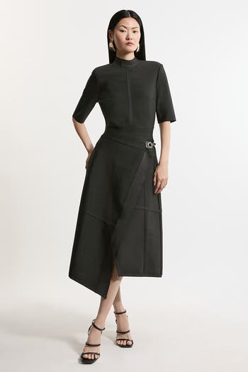 This Asymmetric Knit Midi Dress is a form fitting contemporary work dress that's stylish and creates professional look making work dressing effortless.