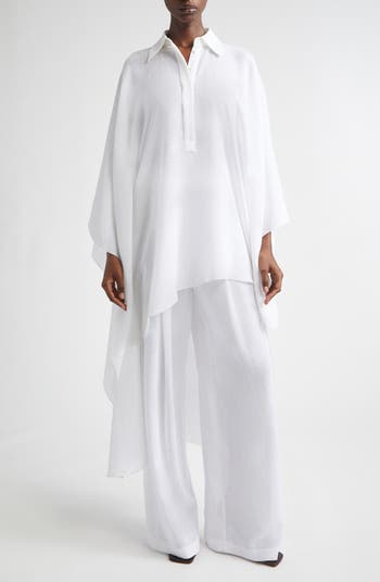 This lightweight, airy caftan embodies an escapist spirit in linen gauze that catches the breeze. Cut with an asymmetric silhouette that’s longer in the back, it’s effortless on its own as a cover-up or paired with other warm-weather favorites.