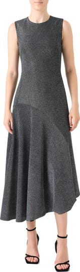 Metallic shimmer brings night out-worthy glamour to a sleeveless dress cut in an asymmetric silhouette for a dash of drama.