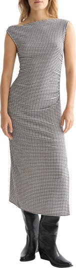 Sweet meets sultry in a ruched-to-fit dress covered in cheery checks and eased with a slit at one side.