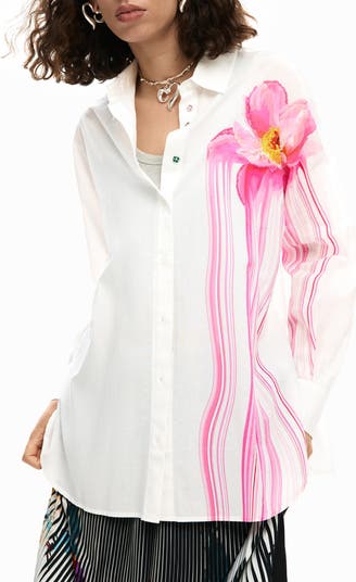 A floral graphic adds the perfect pop of color to this woven cotton shirt complete with a classic point collar.
