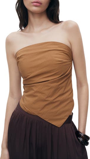 Asymmetric draping creates a unique appearance at the front of this cotton-blend top fashioned in an alluring shoulder-baring silhouette.
