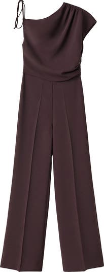 Artfully gathered details accentuate the asymmetric silhouette of a wide-leg jumpsuit that's a poised and modern option for your next special occasion.