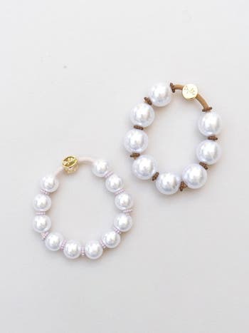 The AT TIFFANY’S capsule is feminine, funky, and effortlessly chic. Hand-strung with glossy pearls and enamel discs, each piece is finished with By Lilla’s signature clasp and designed to transition seamlessly from statement bracelet to functional hair tie.