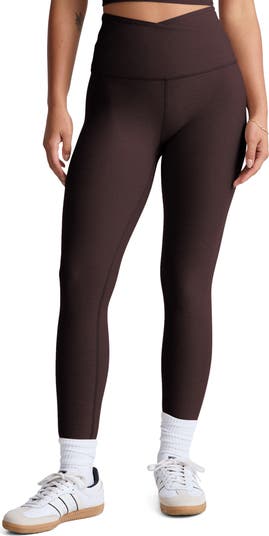 A wide, crossover elastic waistband tops a pair of workout-ready leggings cut from soft, stretchy fabric that moves with you.
