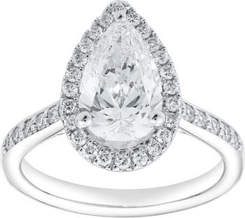 Athena 14K White Gold Pear Lab Grown Diamond Halo Engagement Ring - 2.2 Ct