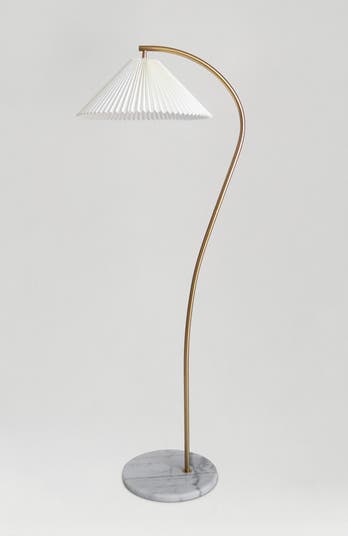The Brightech Athena LED Floor Lamp is sculptural lighting at its most refined. A graceful, wavy brass stem rises from a solid white marble base, culminating in a pleated fabric shade that diffuses light with warmth and elegance. This curved brass floor lamp delivers 800 lumens of soft 3000K glow—ideal for creating ambiance in a living room, bedroom, or quiet reading corner. A discreet foot switch on the clear cord offers easy control, and the lamp is smart compatible when paired with a compatible bulb (sold separately). The Athena’s blend of polished metal, textural fabric, and stone makes it a standout piece for modern, vintage-inspired, or Japandi interiors. We proudly stand behind all of our products 100%, which is why we offer a full 3-year warranty.
