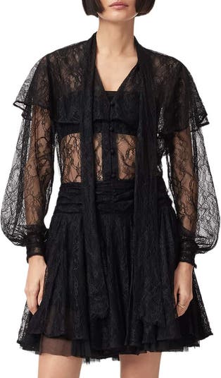 This puff-sleeve shirt made from see-through lace expertly combines sultry styling with a sweet asethetic.