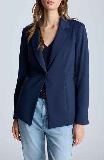 Fall for the stretchy silhouette of this polished one-button blazer that transitions stylishly from desk to dinner.