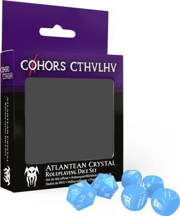 - 6 PIECE DICE SET: Immerse yourself in the Cohors Cthulhu 2d20 Roleplaying Game with this 6-piece Atlantean Crystal Dice Pack, designed as an essential accessory for battling ancient horrors in Rome’s dark age. 2x d20, 4x d6.