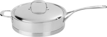 What it does: The 7-layer construction provides unparalleled frying, perfect browning, and guarantees exceptional heat distribution and retention.This straight-sided pan boast a 7-layer base, InductoSeal, whose copper disk ensures impressive heat conduction. Proprietary technology ensures the base stays flat even when heated. The patented Silvinox surface treatment maintains the beautiful silvery white matte appearance. Enjoy easy maneuverability with the stay-cool, welded handle while the rolled rims encourage dripless pouring.