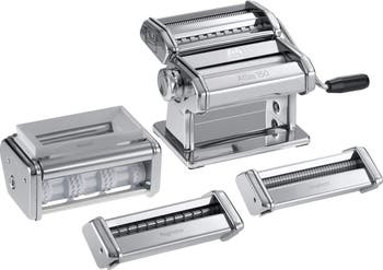 Elevate your kitchen repertoire with the Marcato Atlas 4-Piece Set Pasta Set, a comprehensive ensemble for true pasta aficionados. This set is meticulously crafted in Italy and features the iconic Atlas 150 pasta machine, renowned for its durability and precision. Accompanied by specialized attachments for ravioli, spaghetti, and reginette, it offers a world of culinary possibilities. Whether you're an experienced chef or a passionate home cook, this set enables you to explore the diverse landscape of Italian pasta with flair and authenticity.