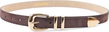 Both modern and timeless, this faux-leather belt features a polished buckle and refine hardware details.
