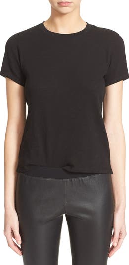 A slightly boxy, shrunken fit perfects the tomboy appeal of a lightweight short-sleeve T-shirt in slubbed Peruvian-cotton jersey.