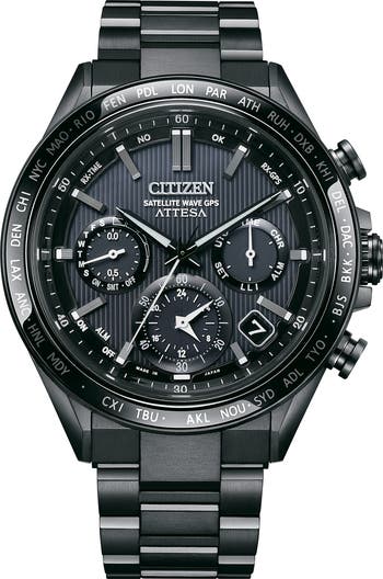 Attesa Satellite Wave GPS GMT Automatic Black Bracelet Watch, 44.6mm