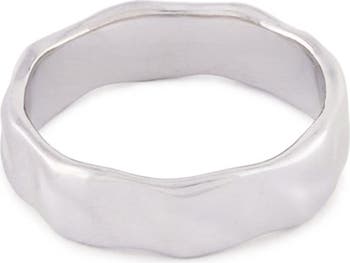 The uneven texture of this slim band ring symbolizes the unrelenting power of water to make its mark on any surface.