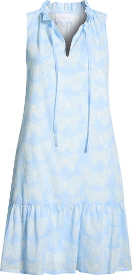 Fluttering butterflies drift across this cotton shift dress finished with ruffle trim and a tiered hem for extra sweetness.