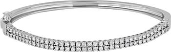 The brightness of 18-karat white gold is emphasized with 76 icy diamonds in this handcrafted bangle.