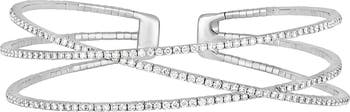 Part of our online trunk show, this style is available for a limited time From July 12 through August 3. Rows set with 170 glittering round-cut diamonds elegantly crisscross on this handcrafted cuff bracelet of icy 18-karat white gold.